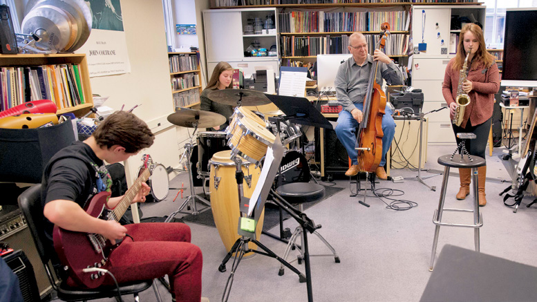 Milton students are busy. Tests, papers, plays, sports and activities compete for finite time in a Milton day. So, when students answer the call to volunteer their time and talents, it’s a big deal. Last October, Milton jazz students answered that call many times. Early in the month, ten student musicians performed a spirited set of South African tunes for an audience of hundreds at “Celebrate Milton,” an event hosted by the Town of Milton and supported by our community service program. Mid-month, Class IV jazz students offered their first performance of the year for parents during Parents’ Weekend. Milton’s three advanced jazz groups followed a week later, playing for the 25th Annual Fall Jazz Concert, a tribute to the music of Thelonious Monk.