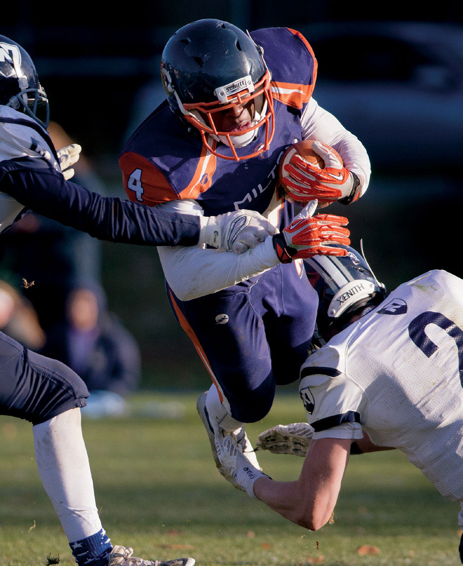 Milton’s varsity football team capped off the storied Milton-Nobles rivalry weekend with a 24–13 win, finishing the season with a 6–2 record. That success earned the team the number two spot in the Independent School League and a NEPSAC Bowl bid. Solid defense and an excellent ground game were key components in the Mustangs’ victory over the Bulldogs. The bowl game invitation was also enabled by a come-from-behind victory over perennial powerhouse Governor’s a week earlier. Trailing 14–13, with time running out, Milton drove the ball down the field to earn the 20–14 victory. The Mustangs were ultimately defeated in their bid to be crowned New England Prep Champions, losing 15–19 to Brunswick on November 21, 2015.