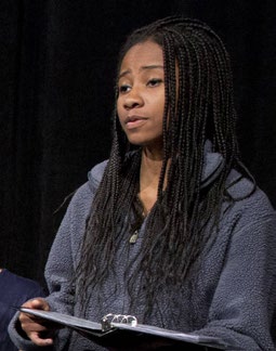 Several months ago these six juniors and seniors set out to probe the ambiguous terrain of emotional and physical safety. Bringing to the stage what they found culminates one second-semester project for the course Narrative Journalism and Performance. It’s “hands on”; they learn narrative journalism skills, performance skills and peer workshopping, through practice. With their co-teachers, Lisa Baker (English) and Peter Parisi (chair, Performing Arts), they identify, research, write and perform stories from within and beyond Milton Academy.