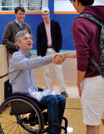 Thirteen-time Paralympic medalist and monoskiing world champion Chris Waddell asked Upper and Middle School students to shift their perspectives of people with disabilities and to push beyond the limits of the labels placed on them. Mr. Waddell became the first paraplegic person to summit Mount Kilimanjaro. He wants his climb, along with his One Revolution Foundation, to improve visibility and opportunities for people with disabilities. Mr. Waddell was inducted into the U.S. Ski and Snowboard Hall of Fame and the Paralympics Hall of Fame. The Dalai Lama honored him as an “Unsung Hero of Compassion.” People Magazine named him one of the “Fifty Most Beautiful People in the World.” Skiing Magazine placed him among the “25 Greatest Skiers in North America.” Middlebury College presented him with a Doctorate in Humane Letters. National Public Radio (NPR) named his 2011 commencement address to Middlebury as one of “The Best Commencement Speeches, Ever.”