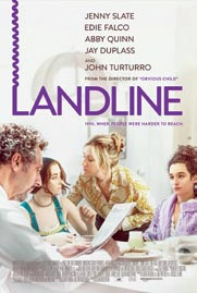 Landline follows the lives and relationships of the Jacobs family—played by Jenny Slate, Edie Falco, Abby Quinn and John Turturro—in 1995 Manhattan. The film is set in an era when people called from pay phones, relied on answering machines, made mix tapes for their friends, and shared one family PC connected to a dot-matrix printer. Technology is a focal point when sisters Dana and Ali Jacobs discover a floppy disk containing erotic poetry written by their father and intended for someone other than his wife. Infidelity seems a family trait, bemoans Ali, as she learns about her father’s extramarital transgressions and watches her older sister cheat on her live-in fiancé with a guy she knew in college. Dana and Ali’s relationship—and its evolution—is a central thread in the film.