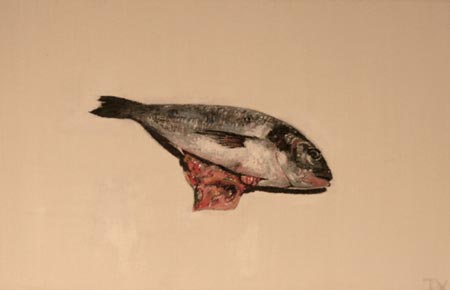 Tony Xu ’17 won a Gold Key award for his painting titled “Fish Guts.” “My interest in painting, specifically this type of realism painting, was inspired by visits to the fresh food markets in China as a kid, and also by my own interest in exploring grotesque and detailed images using oils. Brian Kim’s (’16) works last year were also an inspiration. I created this painting from a photograph of a real model that I made after purchasing a fish from the market.”