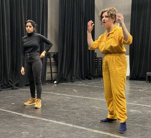 Soldati and her comedy partner, Amrita Dhaliwal, visited improv classes taught by Peter Parisi, a teacher in the Performing Arts Department, before spring break. The performers shared the joy and connection inherent in clowning. As students improvised chickens and horses, and took audience cues for their characters, they added telling flourishes: a Shakespearean flair, comic movement, and a confrontational “neigh.”